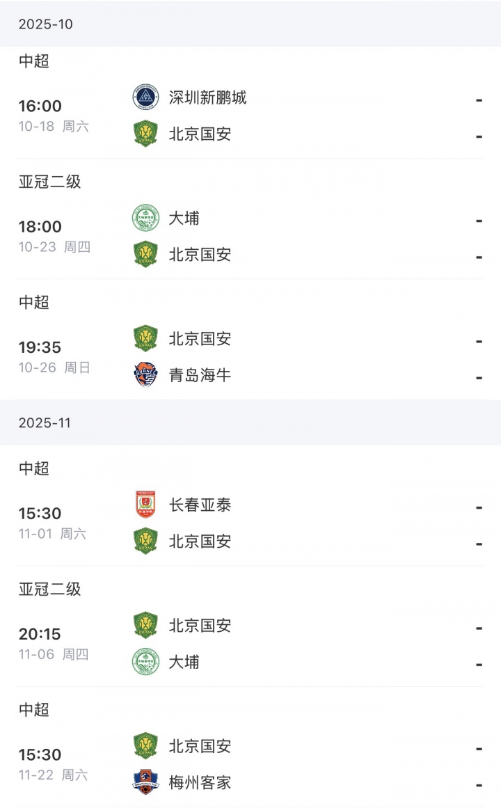 除此之外,国安本轮未赛,他们剩余4场将对阵深圳、海牛、亚泰和梅州。