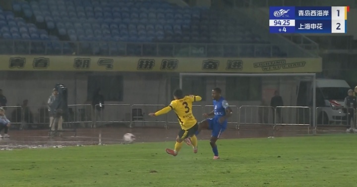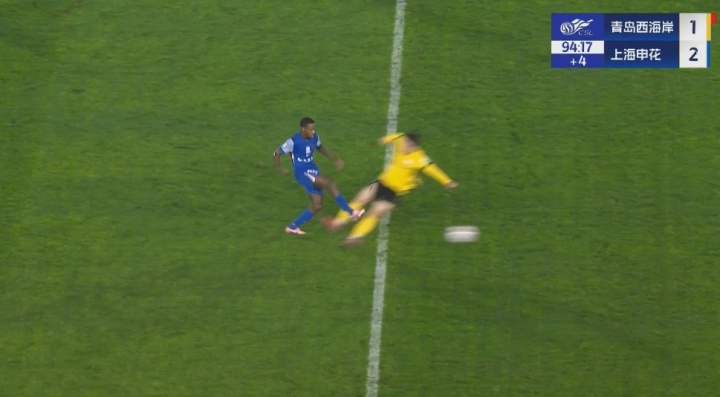 10月17日讯 申花vs西海岸终末时候,赵宏略双腿跳起蹬踏马纳法,差点吃到西海岸第三红!