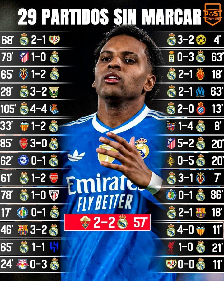 据统计,这场比赛后,罗德里戈依然集结30场比赛、1339分钟没能获取进球,这使他在场次上追平了皇骑兵史时尚最长球荒的记载,此前的记载为马里亚诺30场比赛(986分钟)的进球荒。