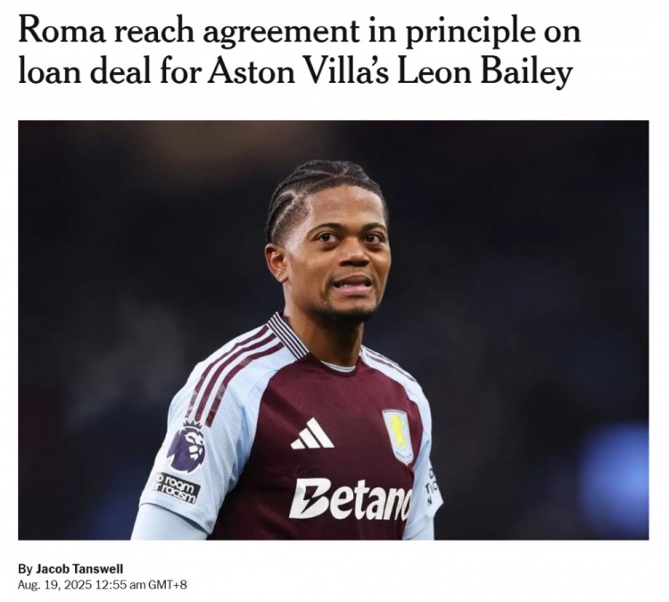 8月19日讯 TA报谈,罗马曾经与维拉兑现原则公约,以租赁的形貌签下利昂-贝利。