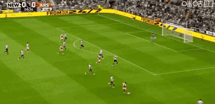 第47分钟,纽卡斯尔联快速反击,阿森纳禁区内突围出现演叨,沃尔特马德门前赢得球权,但左脚抽射击中横梁弹出。