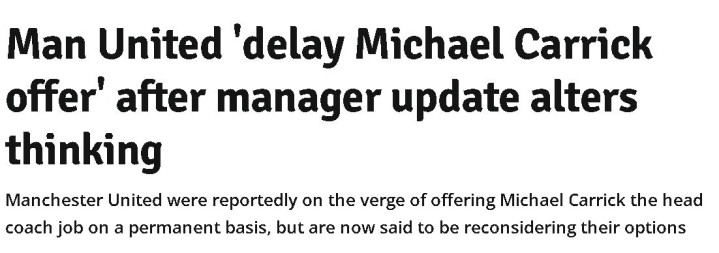 英国《镜报》报道称,现在,曼联最终将如何决定俱乐部的未来走向,仍是未知数。接下来曼联的战绩很可能起到关键作用,特别是接下来与切尔西、布伦特福德和利物浦的赛事 ,这些球队不仅是曼联争夺前五的直接角逐 对手,而且也可以考察卡里克在真正面对压力时能否采取合理的调整。