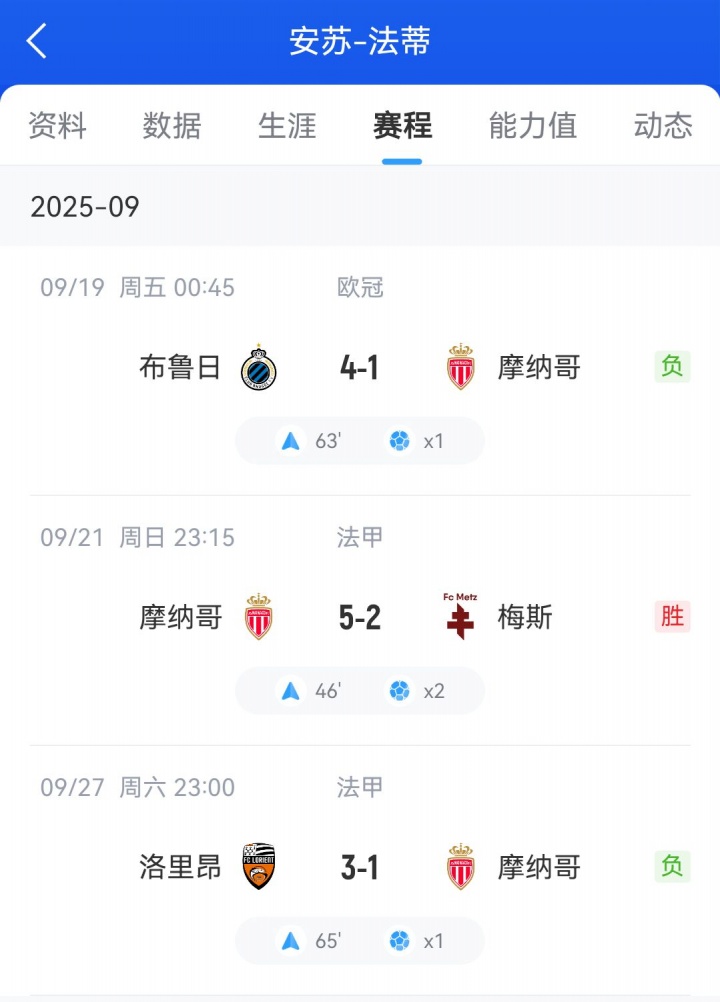 现时,法蒂依然为摩纳哥出战3场比赛(均为替补登场),并在为数未几的上场时辰中打进了4个进球。